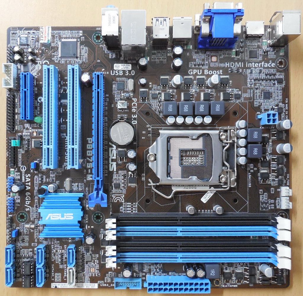 Asus P8B75-M Rev 1.03 Mainboard + Blende Intel B75 Sockel 1155 DDR3 USB3.0
